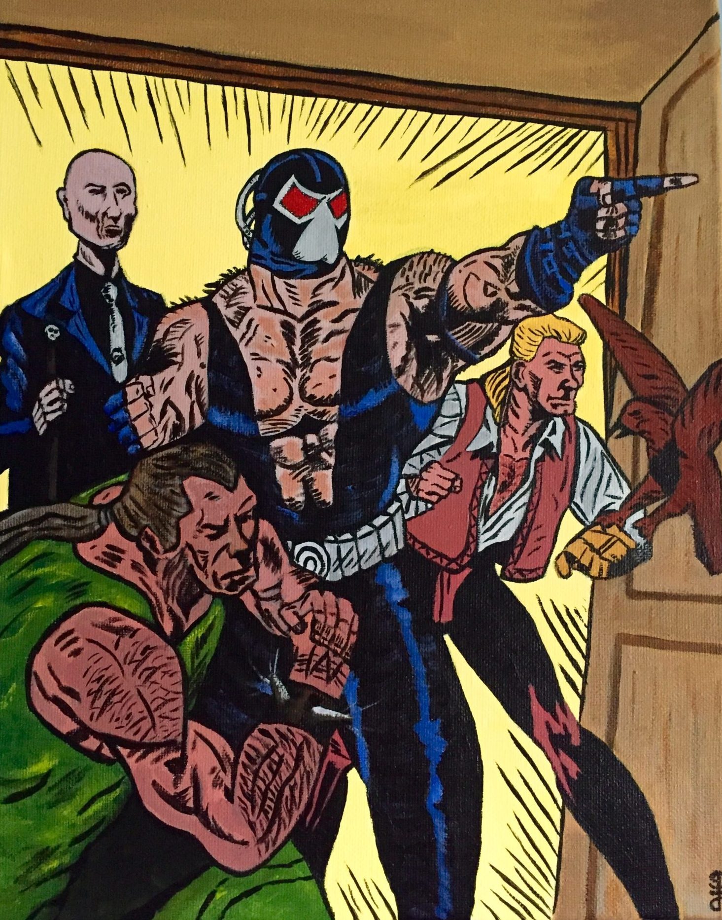 I just finished this comic book style acrylic painting for my 9-year-old son who loves Bane and comic books.
