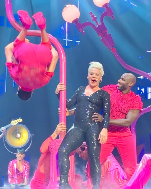 In April my youngest son and I saw PINK in concert. We originally had tickets for the whole family for 2018, but she was ill and the concert was rescheduled. By the time the concert came around the following year B and D were no longer interested, so I used the money that was already spent to upgrade E and I to the Pit; after all, we are the huge fans. My dear friend and her son were able to get tickets also and joined us for the event.