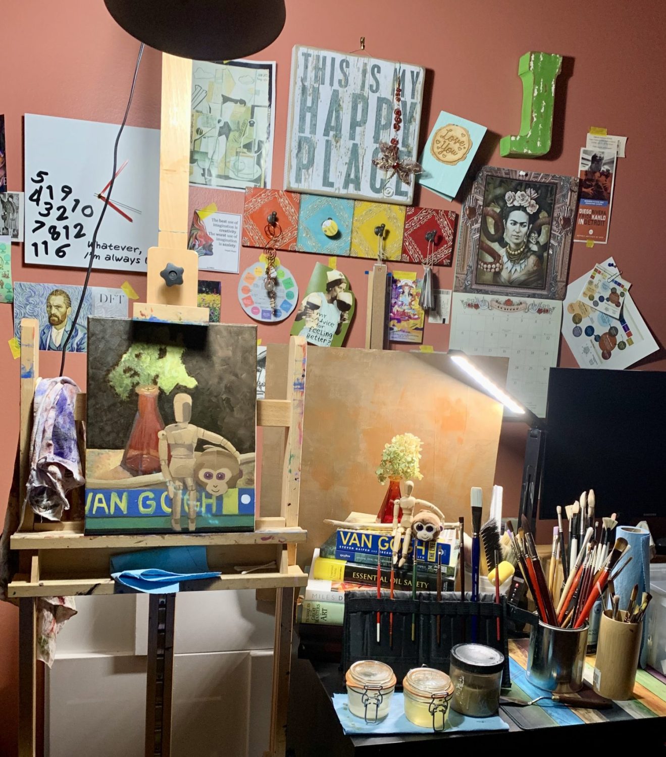 Our next assignment for the “Mitchnick Gang” was to work with, “UGLY PAINTINGS FAST and STRONG… to get into risk taking mode…and get energy flowing…” Nancy set up individual still lifes, at eye level, with various light sources and we went to work.