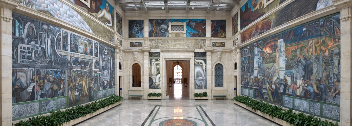In 1932, Diego was commissioned by the DIA and Edsel Ford to paint two large murals for the Garden Court with the understanding that the work must relate to the history of Detroit and the development of industry. The investors knew hiring a Mexican artist during the Depression would be controversial, but the men were very impressed with his work and went forward. Frida and Diego packed up and headed East in the summer of 1932 and were in Detroit for almost a year.