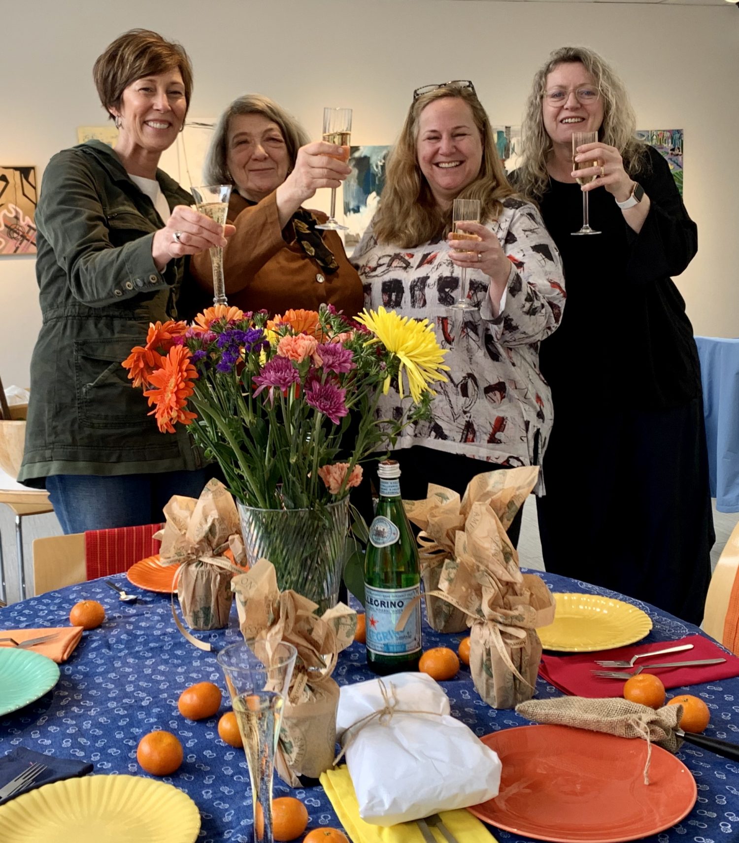 In early March the “Gang of 4” met up for a luncheon at the BBAC in my honor. It was so great to see my art friends and catch up. The girls brought/made little thoughtful gifts for me — I was so touched! Nancy gave me two metal Milagro pieces; a small arm and a larger hand.