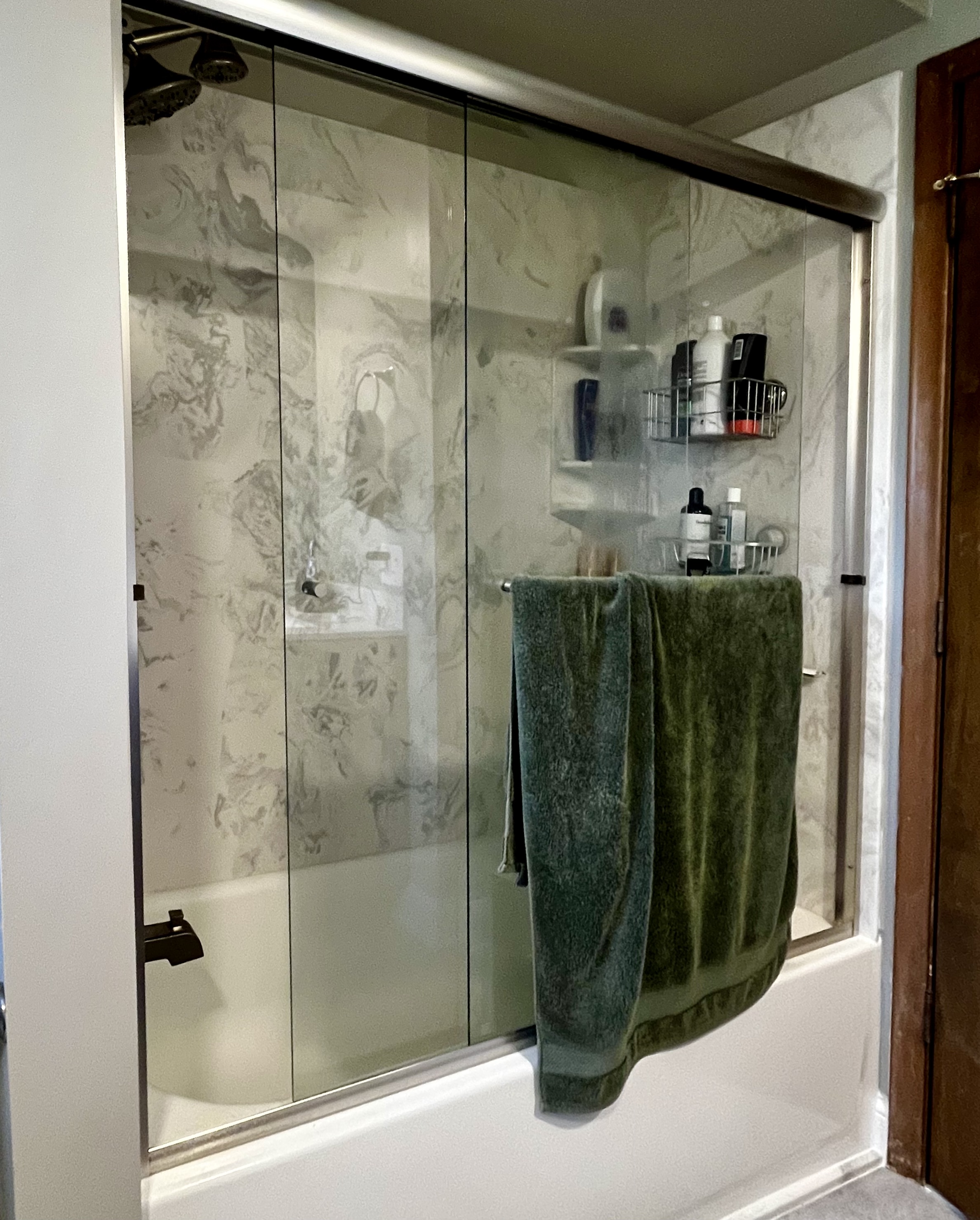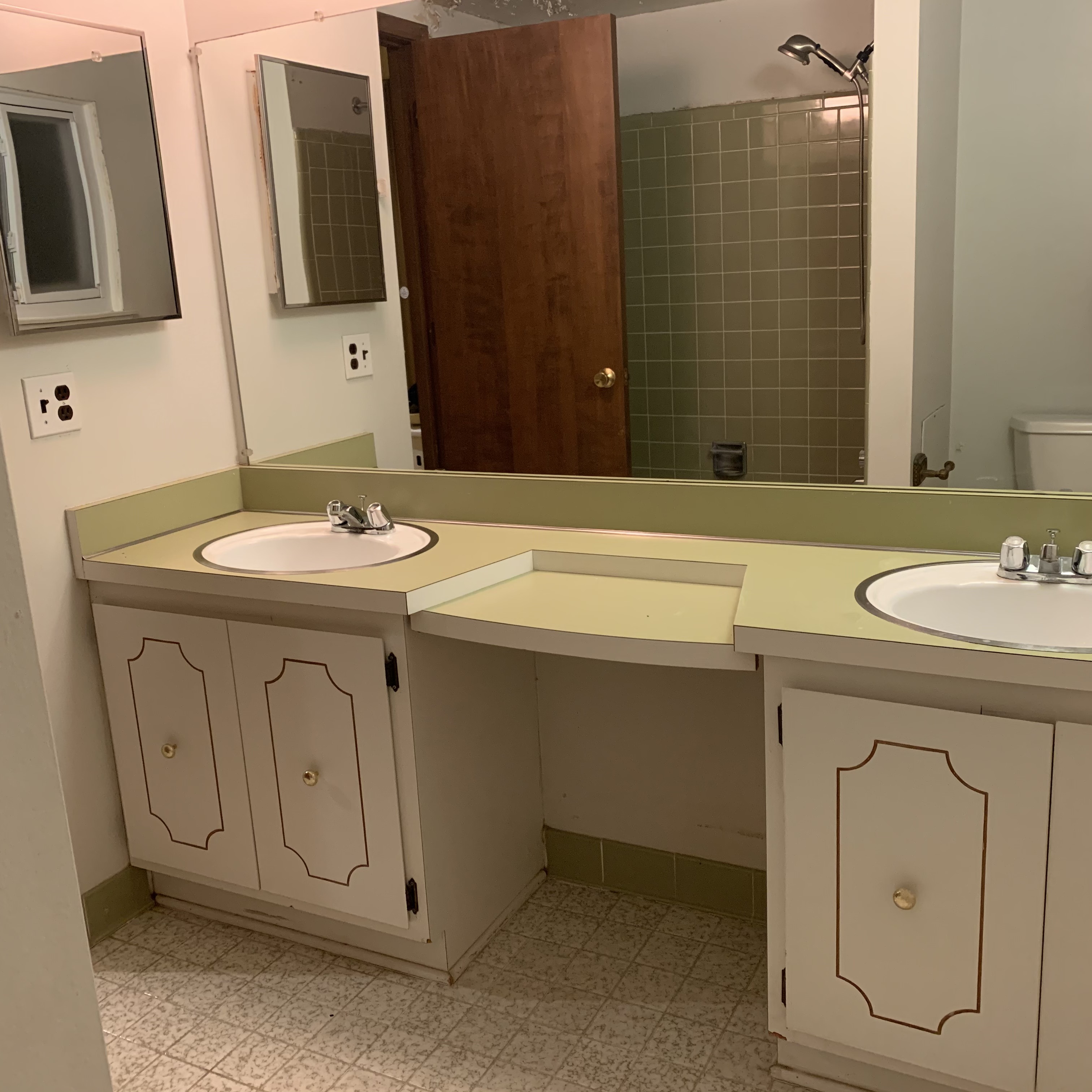 In the Spring of ’21 we FINALLY updated our 1980’s OG bathroom. You know the look. I can almost hear the builders, “Hey, let’s just use whatever we have left over from the 70’s that nobody wants anymore; beautiful limeade green and white with basic $10 fixtures, a rusty medicine cabinet and a giant mirror that can’t be cleaned without a step stool; we’ll even through in some ugly-ass light fixtures for free!”