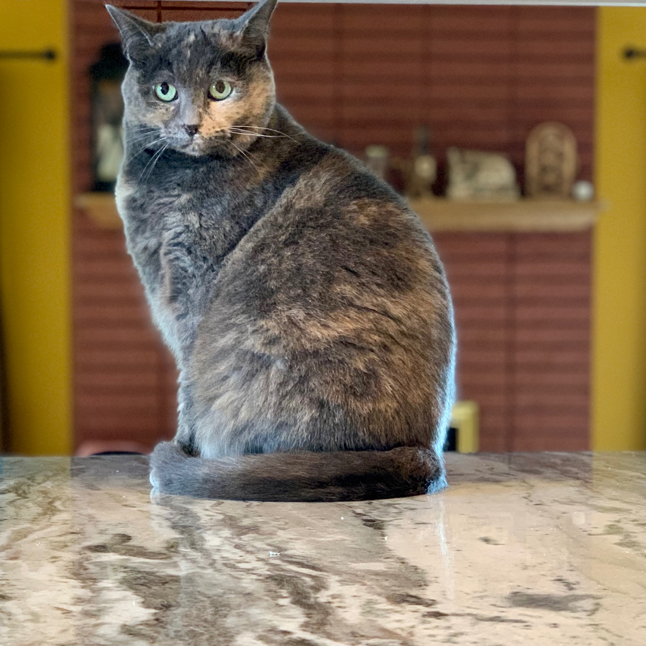 Next, it was time to tackle the kitchen. We opted to have the old outdated formica countertop replaced with beautiful marble and had the cabinets refreshed with a two-tone medium/light grey to match our cat Zoe. JK! But look how cute she is sitting on the new marble countertop! For the finale, we had our entire home painted a neutral grey tone — we had caught the Griege bug!! — with pops of darker grey accents. Again more hiccups/delays would be the norm, but in the end it came out beautiful!